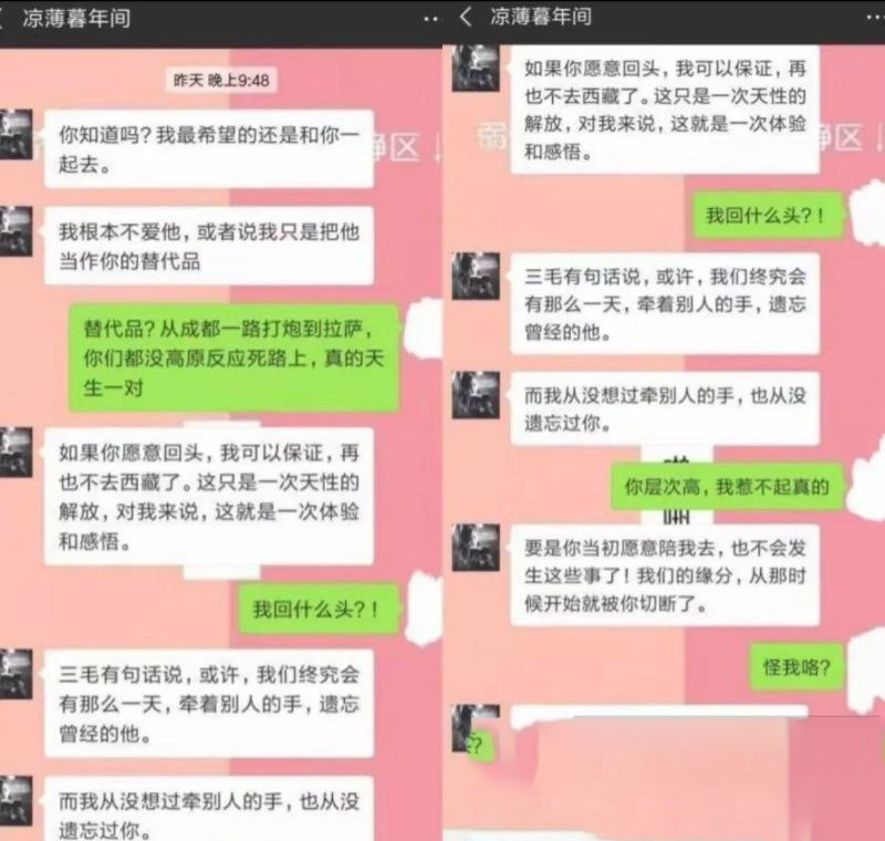 坐拥抖音1300万粉丝的网红大冰,近日被粉丝接连曝出大量负面消息。据称,他长期以“文艺浪子”的人设吸引女性粉丝,最初常以旅行、西藏等话题展开聊天,随后逐步转向暧昧表达,不断拉近关系、模糊男女边界,并通过营造情感依赖来推进互动,最终被质疑存在不当动机。